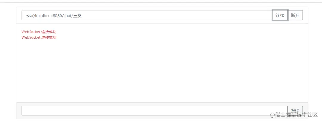 通过启动引导类来启动项目之后,我们输入 ws://localhost:8080/chat/sanyou, 建立一个连接,模拟一个客户端。