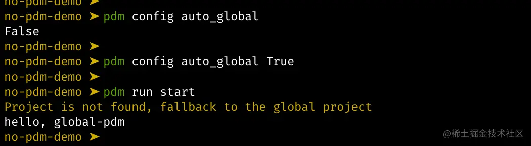 上面之所以说默认情况下如果本地目录没有 pyproject.toml ,pdm 并不会去使用全局的 pyproject.toml。