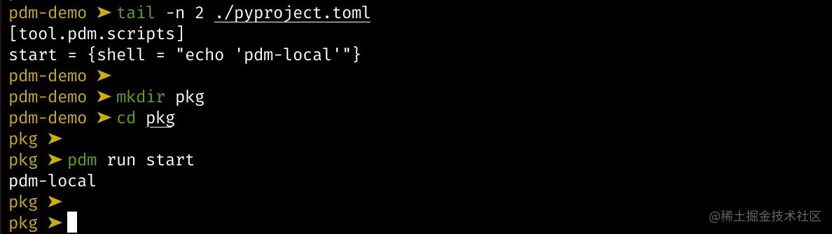 默认情况下,当你没有指定 -g 参数去执行 pdm 命令时,它只会先从本地目录读取 pyproject.toml