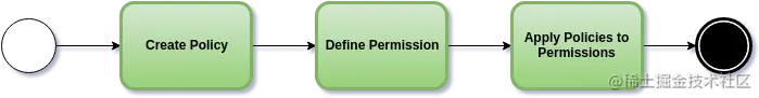 - 权限:权限将被保护的对象与必须评估的策略关联起来,以确定是否允许访问。语法** X 可以在资源 Z 上施加 Y**。这里X指可以是用户、角色、用户组,或者其组合。在这里你可以使用声明和上下文。Y指代一个动作,如写、读等等。Z指代被保护的资源,如 "/accounts"。