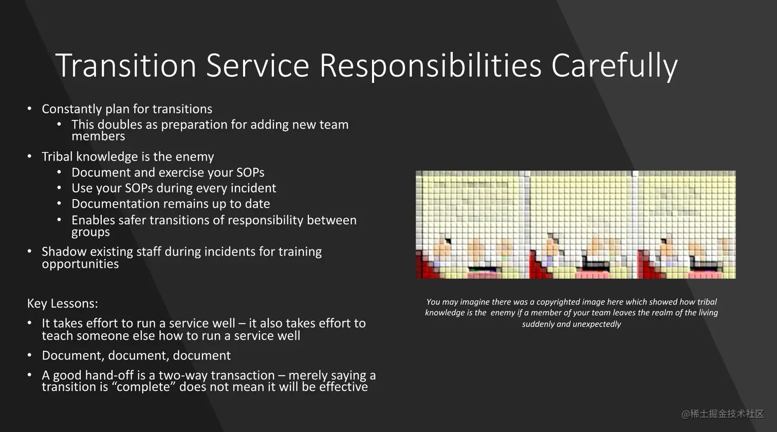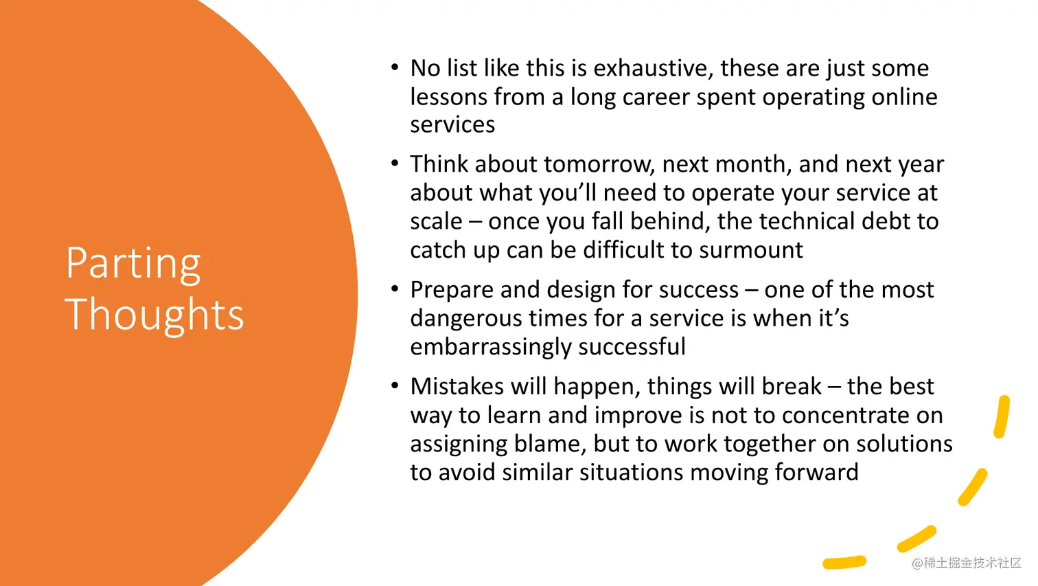 故障总会发生,最好的学习和提高的方法不是集中精力互相指责,但要共同寻找解决方案避免类似的情况再次发生。