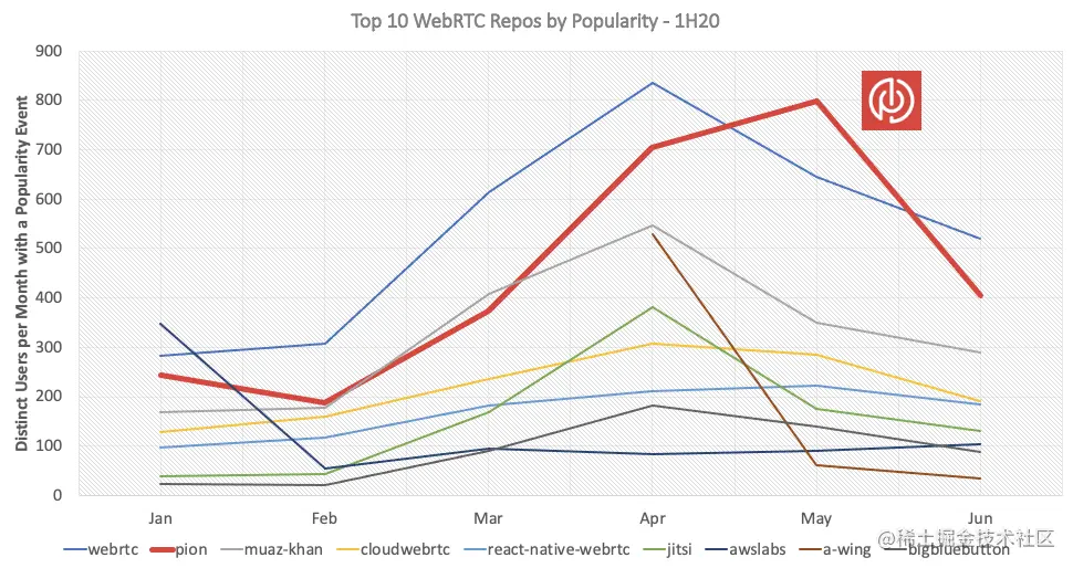 上图是2020年H1,10个WebRTC库的受欢迎情况。