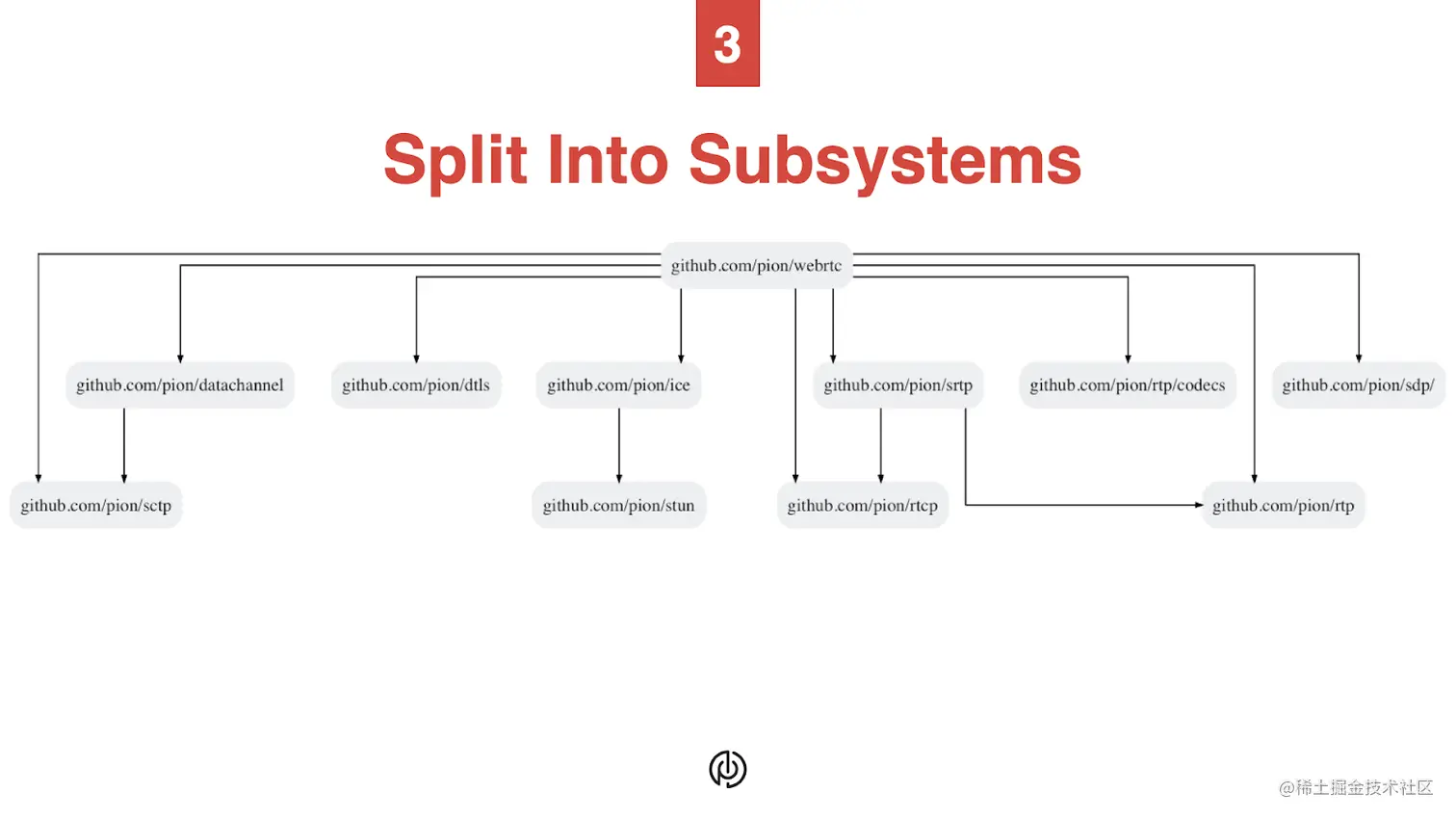 Pion项目囊括了很多内容,它包含了所有WebRTC需要的主要元素。让我们来回顾一下主要的代码仓库。Sean首先从TURN开始(应为他就是从TURN开始开发的),然后回顾了一下ion(一个完整的WebRTC会议系统),以及其它的一些东西。