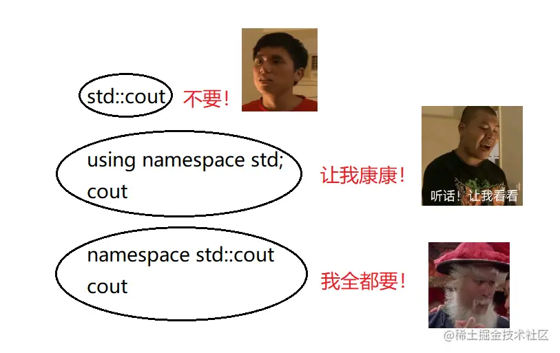 📜 上面的代码,我们之所以可以直接用 cout,是因为我们已经把 std 这块库命名空间展开了。我们下面会对专门对展开方式进行一个探讨。