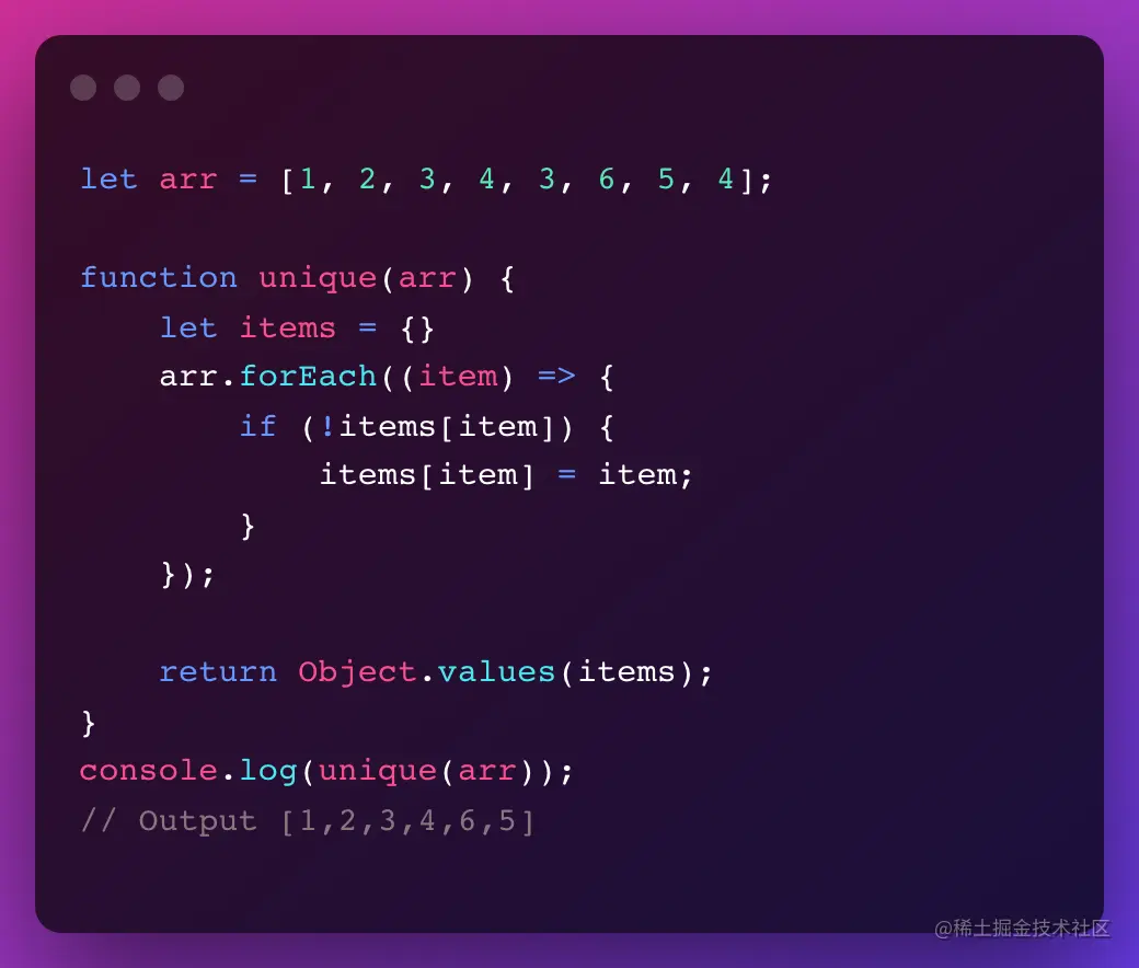 8. 从数组中删除重复项并返回 O(n) 复杂度的唯一值。