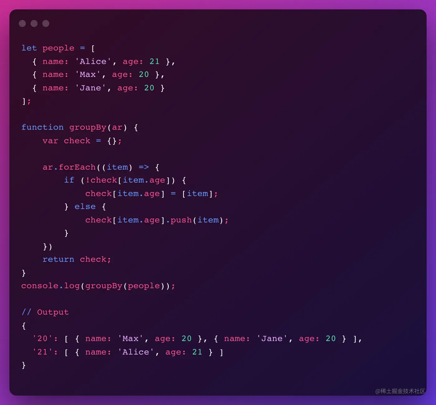 2.根据给定对象数组的年龄对项目进行分组