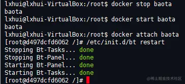 上面我们可以看到宝塔应用还在,如果服务器断电或者重启了,也就是docker service重启了,宝塔还在吗?我们试试
