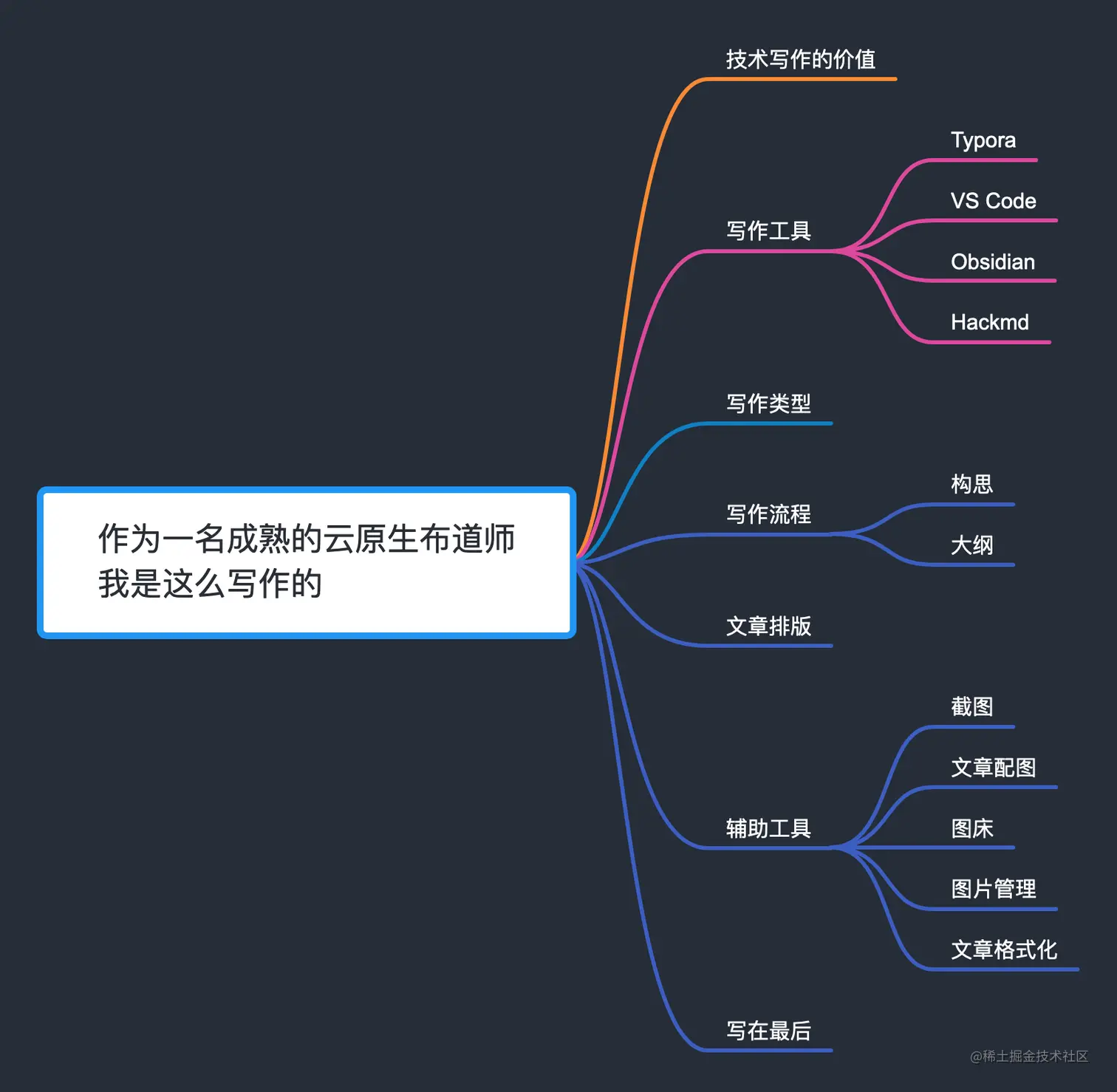 我们写了一篇《技术文章写作指南》供参考,使您在文章格式上更加规范。另外这篇教程里还会传授您写作思路,以及推荐一些比较好用的工具,比如 Markdown 格式内容的编辑工具、截图工具、一键排版工具等等。