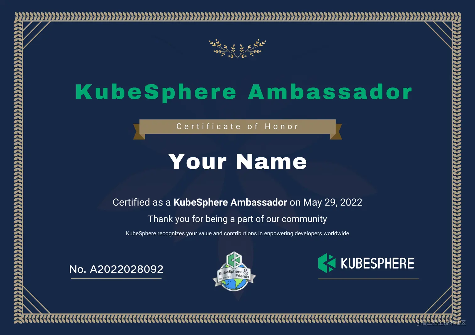特别奖励:如果您在一年时间内写了三篇以上的 KubeSphere 相关技术文章,且从没有获得过社区的 ambassador 证书奖励,那么你就可以获得今年的 ambassador 荣誉奖励。