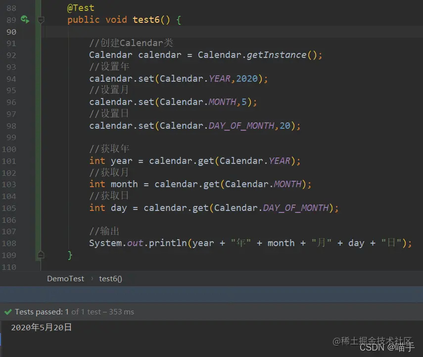 接下来,我们就一一来演示Calendar类的常用方法