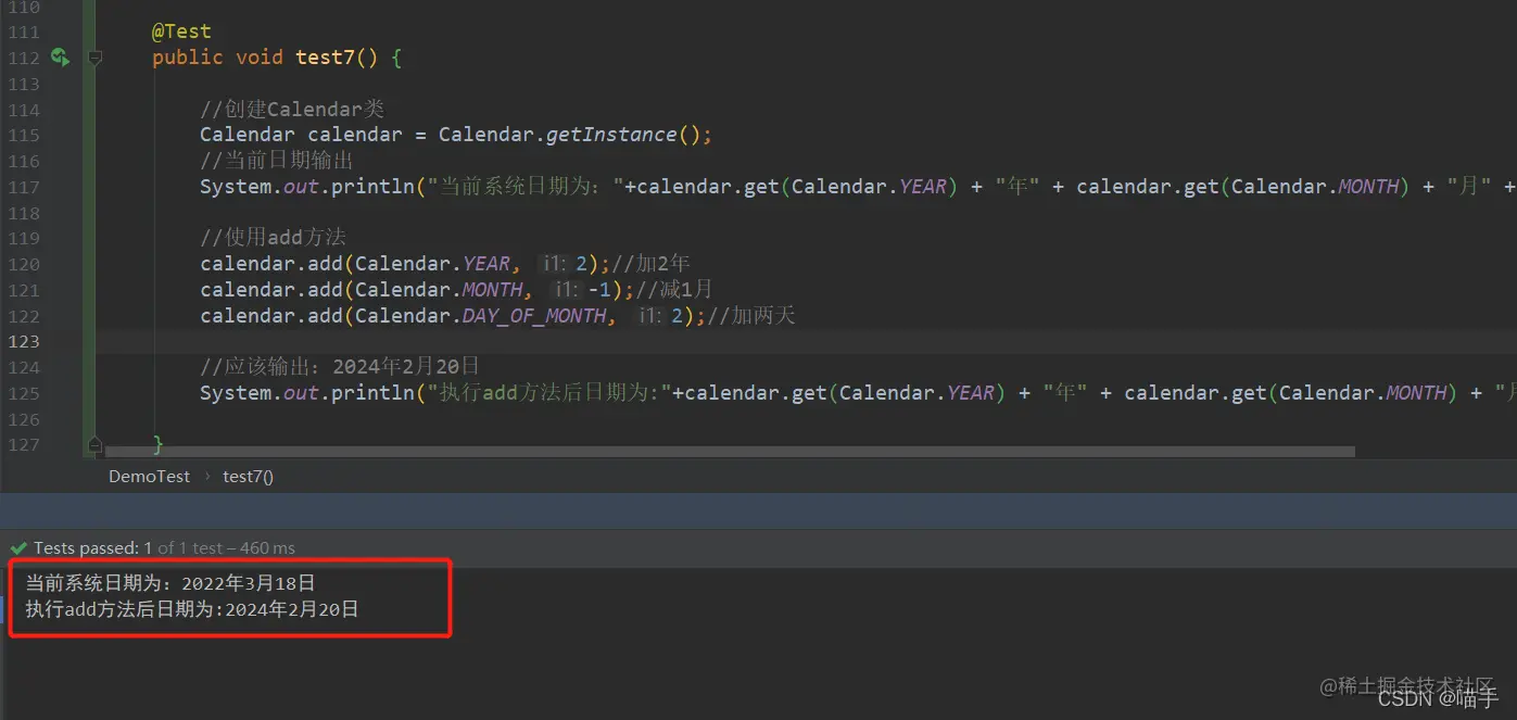 System.out.println("执行add方法后日期为:"+calendar.get(Calendar.YEAR) + "年" + calendar.get(Calendar.MONTH) + "月" + calendar.get(Calendar.DAY_OF_MONTH) + "日");}