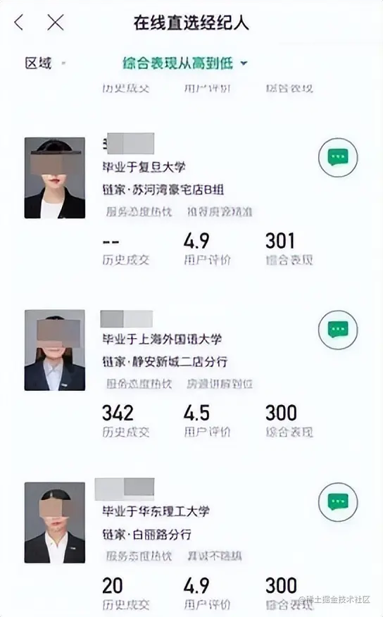 昨天看到一张图片,某房产网站上显示的经纪人,按综合表现从高到低,排在前三位的均毕业于复旦大学、上海外国语大学这样的重点院校。