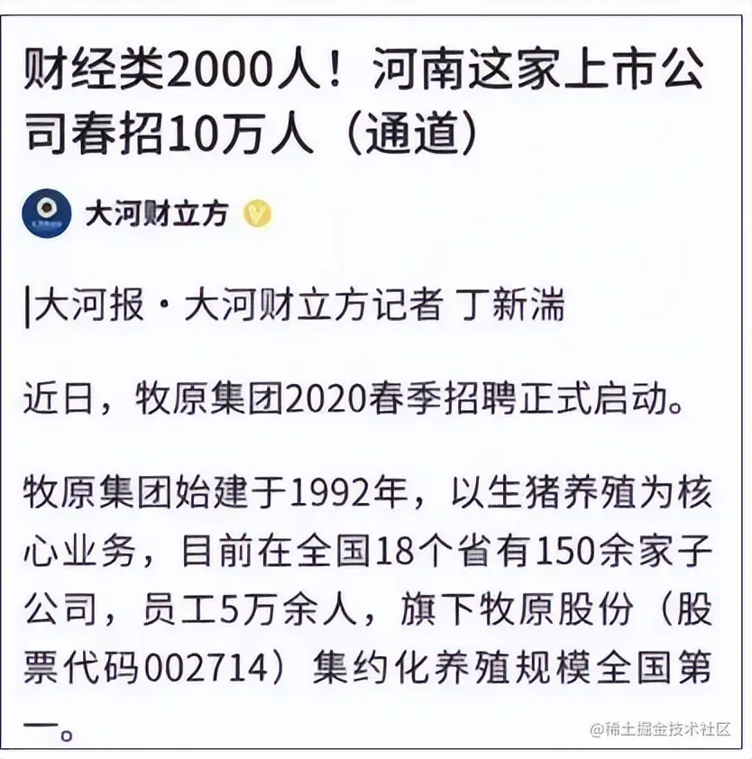 河南牧原集团春招10万人。