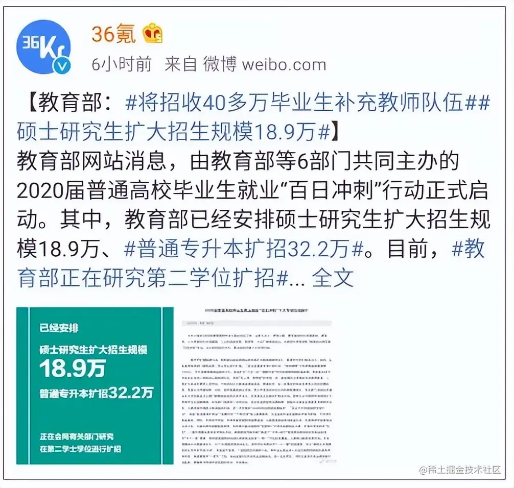 招收40万毕业生补充教师队伍、专升本扩招、考研扩招,上升渠道进一步开放。