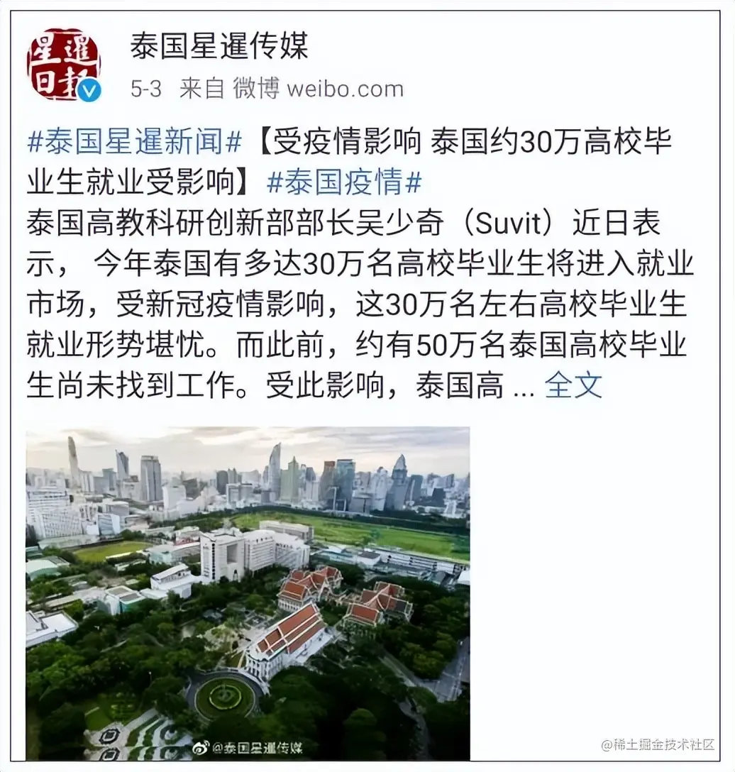 不仅仅是美国,很多国家和地区都受到极大的影响,泰国30万毕业生就业是一个很大问题,之前的50万毕业生还没有找到工作。