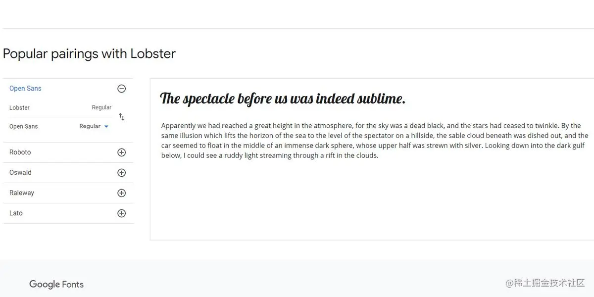 因为龙虾是如此容易阅读,所以将它与Open Sans配对是正确的选择。这种字体的常规风格具有开放、圆形和简洁的格式。出于这个原因,读者可以在印刷品、网络和移动设备上愉快地阅读这种字体。