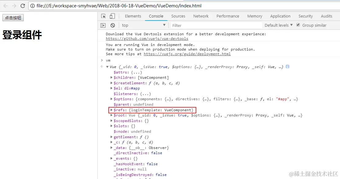 <input type="button" value="按钮元素" @click="getElement" ref="myBtn">