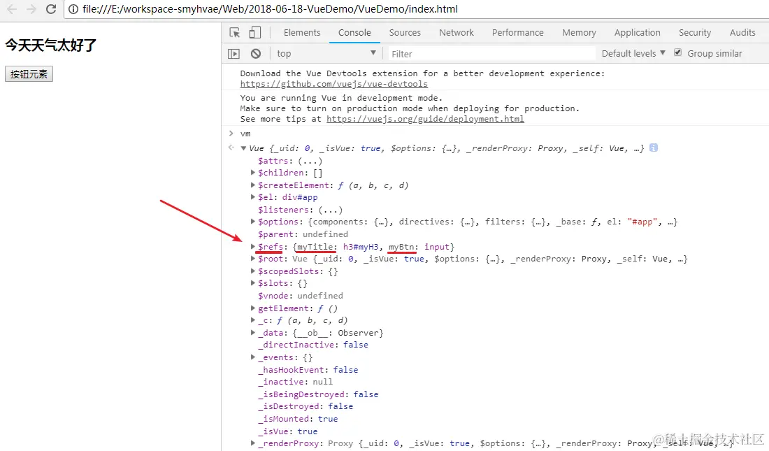 <h3 id="myH3" ref="myTitle"> 今天天气太好了</h3>