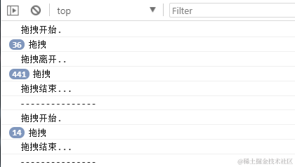 // 拖拽离开:鼠标拖拽时离开被拖拽的元素时触发