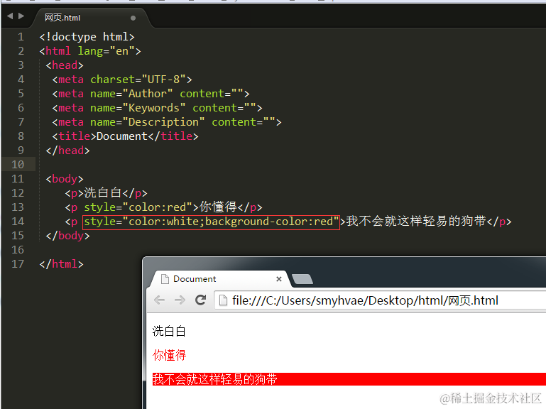 但是,如果在sublime中输入st或者style然后按tab键,可以自动生成的格式如下:(不建议)