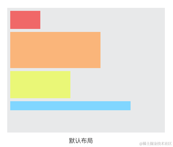 上面这张图中的布局是我们都熟悉的:默认文档流中,在一个父容器里放置多个块级的子元素,那么,这些子元素会默认从上往下排列。