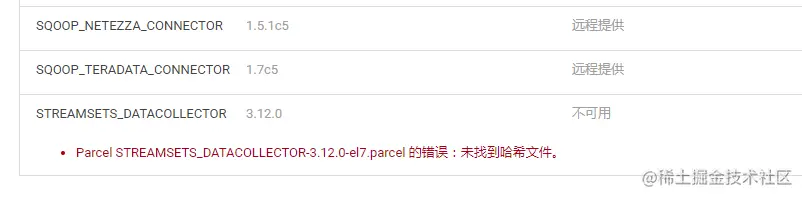 SHA中下载的是STREAMSETS_DATACOLLECTOR-3.12.0-el7.parcel.sha文件,对对应的parcel文件进行hash验证。如果忘记下载这个则后面会报错:Parcel STREAMSETS_DATACOLLECTOR-3.12.0-el7.parcel 的错误:未找到哈希文件。