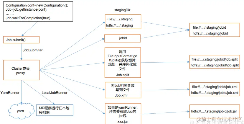 status = submitClient.submitJob(jobId, submitJobDir.toString(), job.getCredentials());