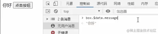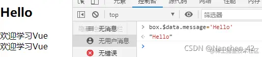 可以通过F12调用到控制台,去更改Vue对象的message的值
