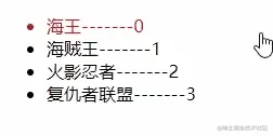 <li v-for="(item,index) in movies" :key="index" :class="getStyle2(index)" @click="change(index)">{{item}}-------{{index}}</li>