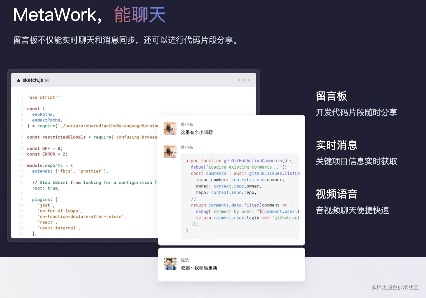 内置留言板,边聊天边分享代码段。