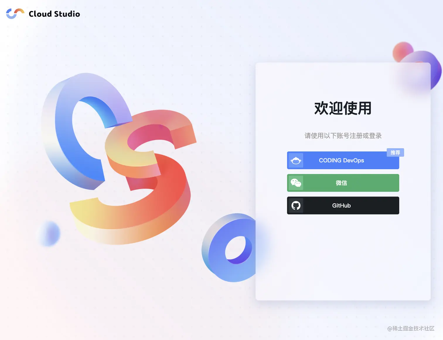 https://cloudstudio.net/,注册一个账号。支持 CODING/微信/Github 三种。 -