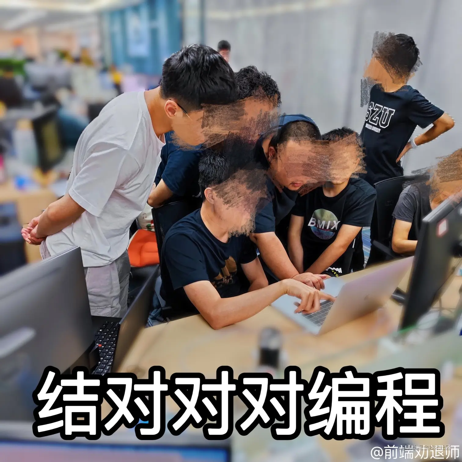 - 众后端围着前端审查代码。