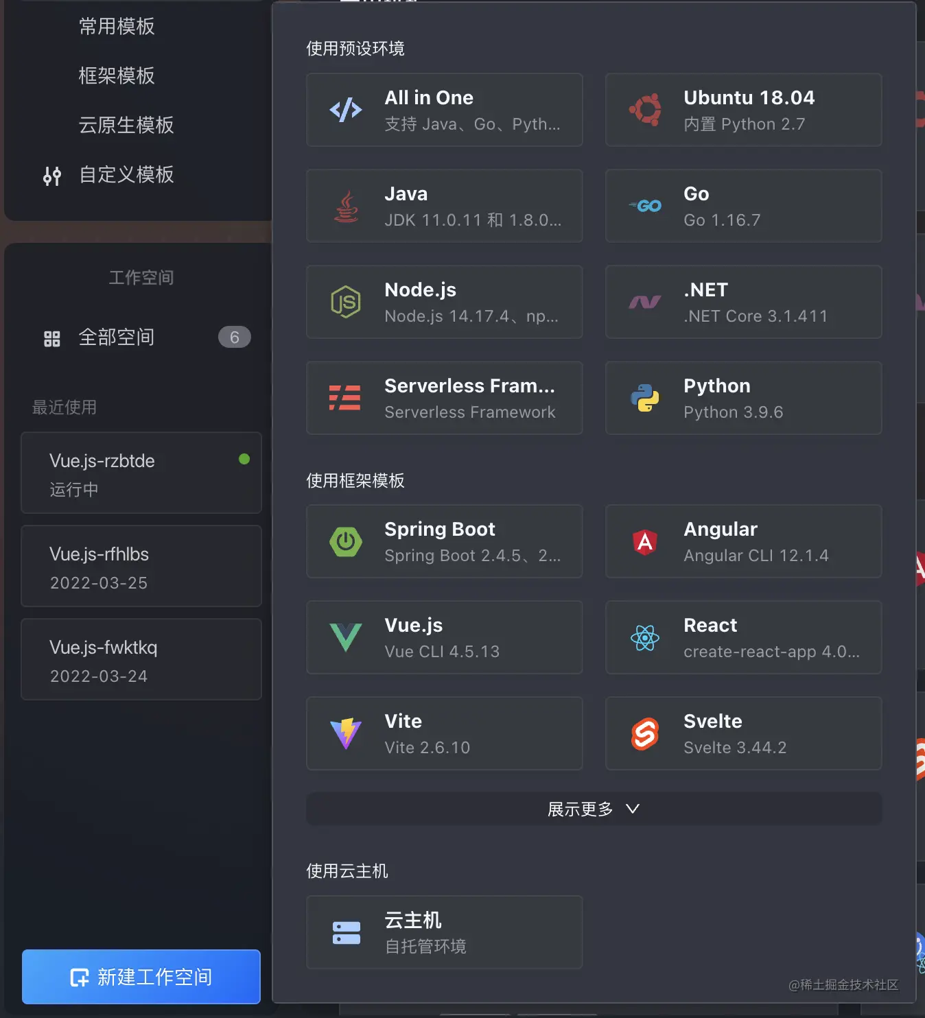 到控制台生成一个空间(为了方便起见,我用了官方