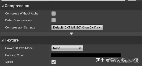 看到压缩设置是默认的,没有以 Normal 格式进行压缩(原因看红色的注释),而且也勾上了伽马矫正 sRGB (为了适应真实世界的颜色,会对图片暗处的颜色倍增,比较笼统的解释,这部分可以在知乎看到更详细的讲解),此时法线在贴图上是以颜色空间 0 到 1 储存的,而法线是矢量,具有方向,法线空间的值是 -1 到 1 所以有了这一步 0~1 x 2 -1 变为-1~1