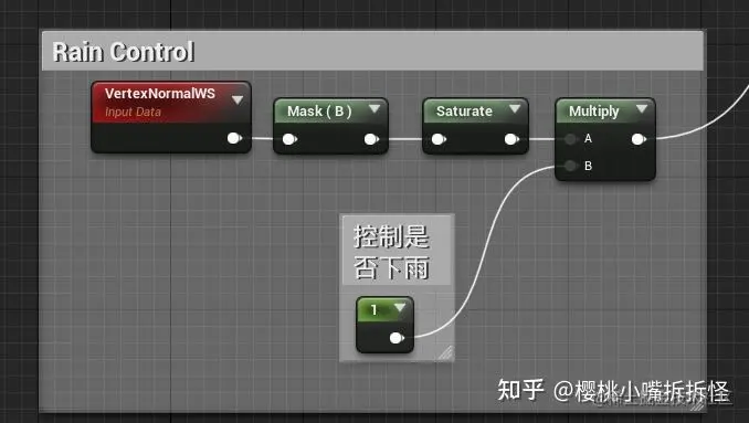 至于输出 Mask,我们以后做完整的下雨材质时,可以叠加其它下雨场景相关的效果。
