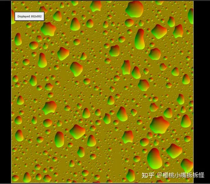 我们就得到了较大的水滴了,这里实在不理解的拿出纸笔,把 Alpha 通道里不同的值演算一遍就知道了,小于 0 的值都会变为黑色,举个栗子,-0.7 虽然被显示为黑色,但是他是具有值的,并不是 0 。