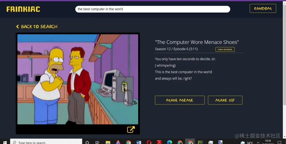 要深入了解技术细节,Frinkiac是用Go写的。谷歌使用人工智能来理解你的搜索,而Frinkiac则通过视频解析找到屏幕截图。Frinkiac的工作方式是将《辛普森一家》的每个场景解析为100个部分。它计算出每个部分的平均颜色,然后与前一个场景或图像进行比较。Frinkiac只在当前场景与前一个场景有差异时才会保存屏幕截图。