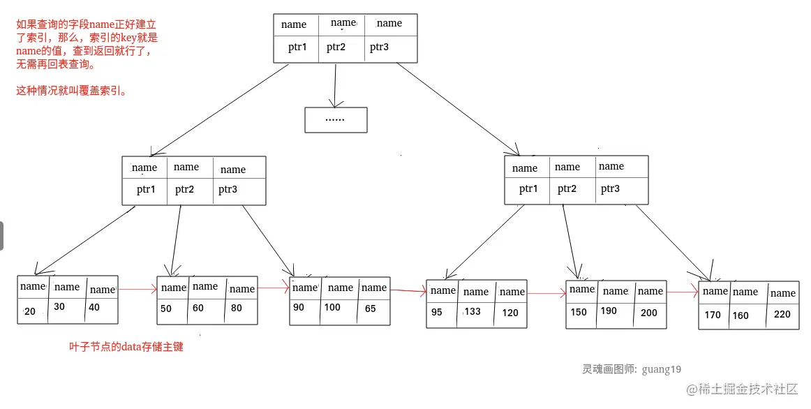 那么这个索引的key本身就是name,查询对应的name直接返回就行了,无需返回表查询。