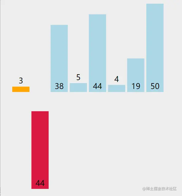 - 针对所有的元素重复以上的步骤,除了最后一个。