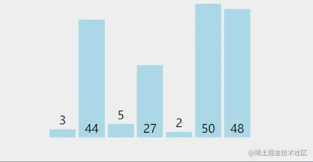 - 持续每次对越来越少的元素重复上面的步骤,直到没有任何一对数字需要比较。