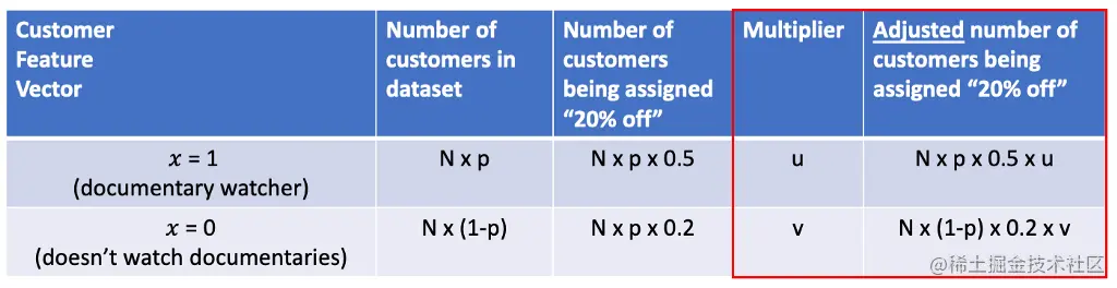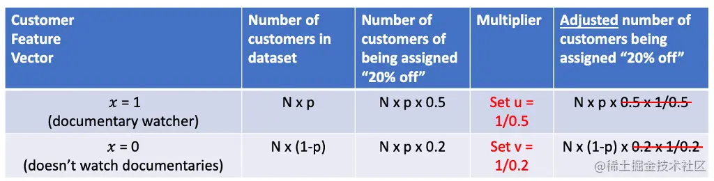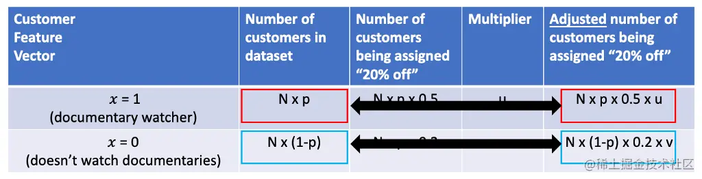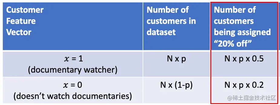 (即,在我们的样本中观看纪录片的_Np_顾客中,根据我们的数据收集政策,其中50%将被分配到 "8折",所以我们得到_N_x_p_x 0.5)