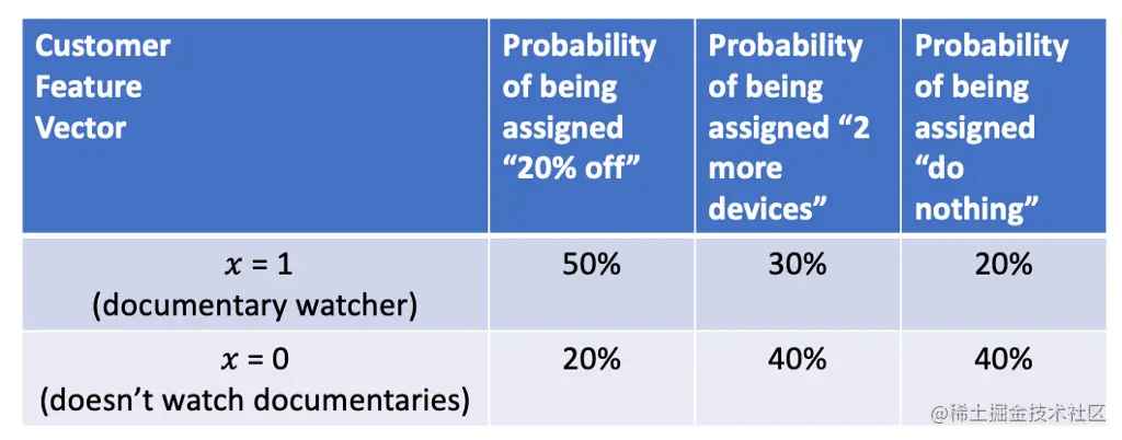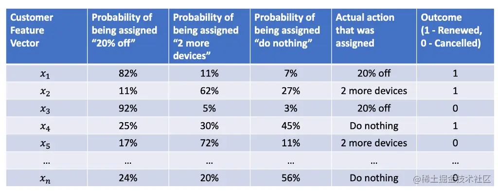 我们的目标是从这个数据集中学习一个函数,为每个客户分配最好的行动,也就是说,我们要学习一个最优策略。