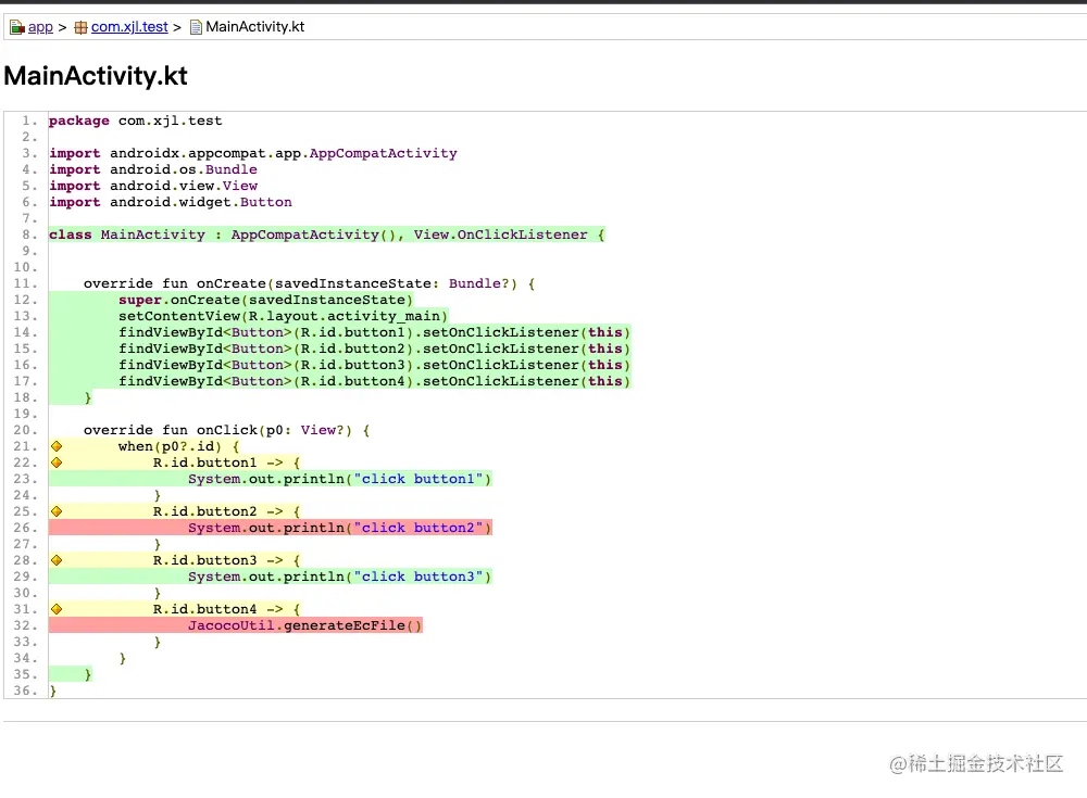 在Android中使用jacoco进行代码覆盖率比较简单,按照下面几个步骤即可开启并展示结果。
