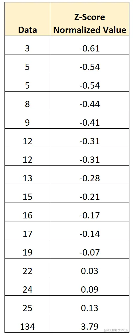 我们使用以下公式对数据集中的每个值进行Z-score规范化。