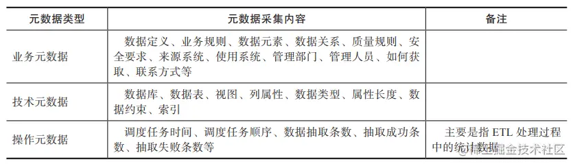 元数据采集内容主要包括业务元数据、技术元数据和操作元数据,详细说明见表1。