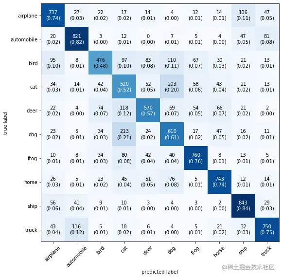 在本教程中,我们训练了简单的卷积神经网络 (CNN) 来对 图像进行分类。从学习曲线图中我们观察到,在 3 个 epoch 之后,验证准确度低于训练集准确度,即我们的模型是过拟合,这意味着我们增加了模型的复杂性。还使用混淆矩阵评估模型。观察到该模型对鸟、猫、鹿、狗等标签的预测精度较低。