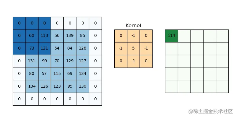 卷积使用a 从输入图像kernel 中提取某些 特征内容。核是一个矩阵,它 slide跨越图像并与输入相乘,从而以某种理想的方式增强输出。