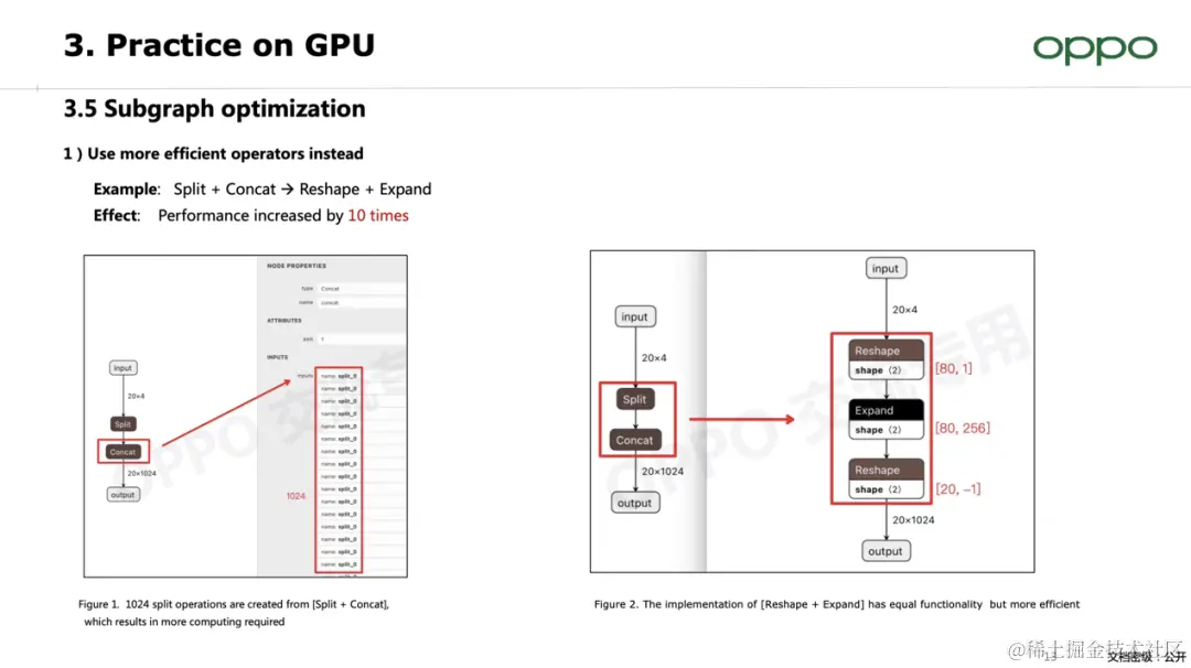 Split+Concat”算子将会创建1024个split操作,带来大量重复冗余的计算。替换为”Reshape+Expand”之后,它在计算逻辑上可以保持与原来一致的计算结果,但是它的计算性能可以提升10倍。