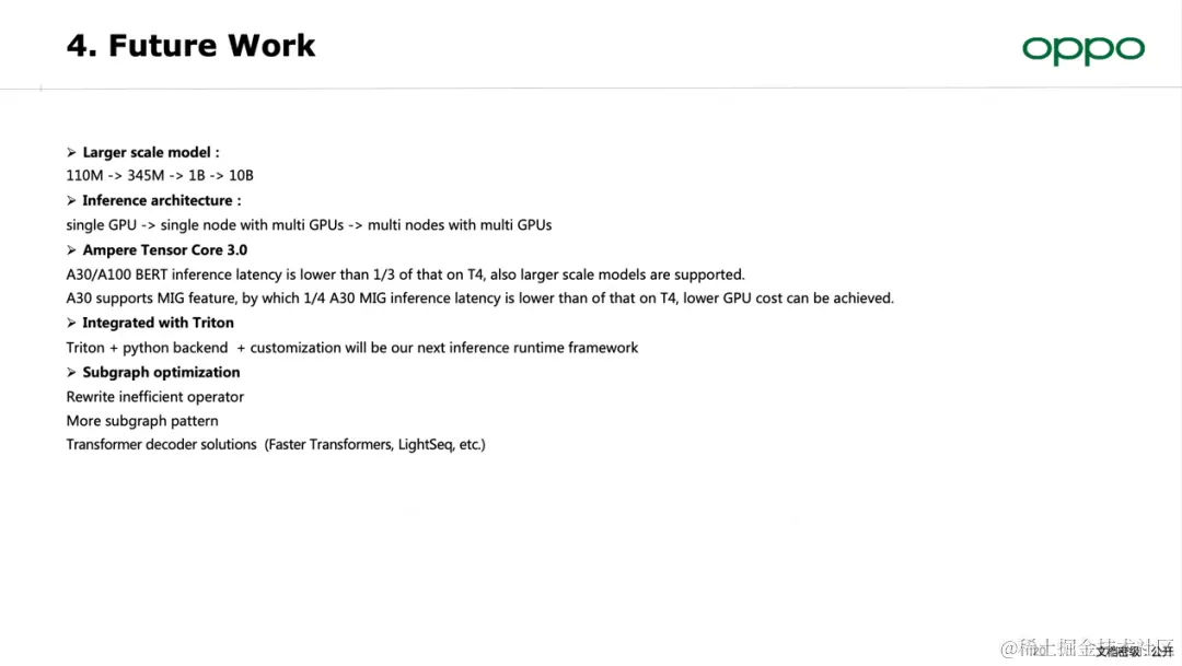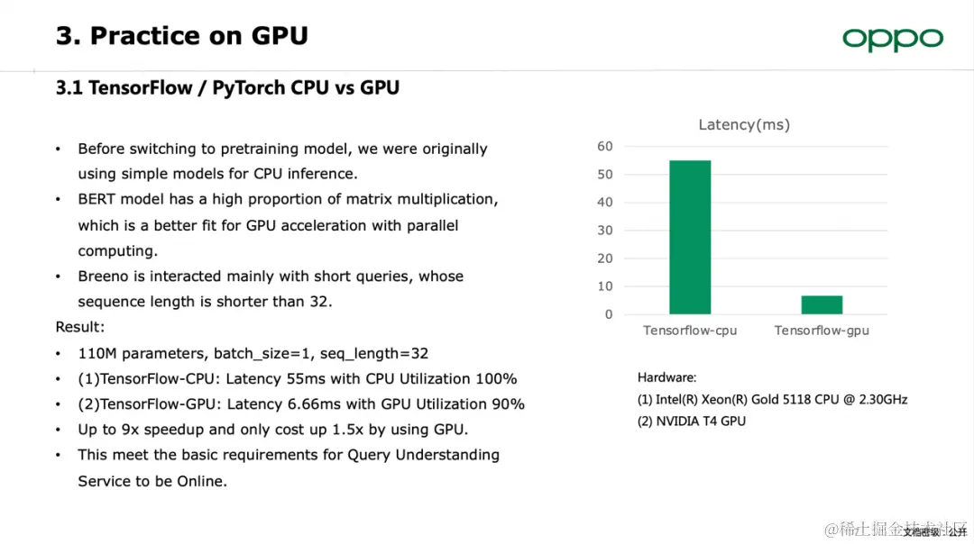 导读:本文主要分享OPPO机器学习团队在Nvidia GTC 2022会议上的投稿经验,以及我们在GPU推理加速在NLP场景应用上所做的工作和落地后的实际效果。