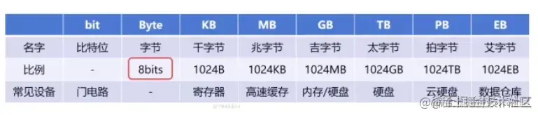 0/1能够表示的内容太少了,需要更大的容量表示方法,使用字节表示:1Byte=8bits